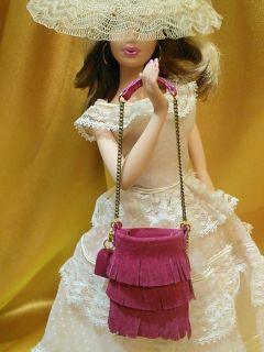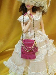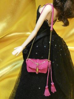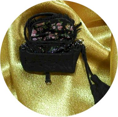 フリンジをミックスしました。 サイドの長いチェーンの先には 同革のタッセルが付いています。 裏地はピンク地にブラックドットです。