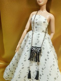 センターのベルト部分に手を通すと クラッチ持ち(風)が出来ます。 ラリエットは先に留め金が付いているので お好きな所に留められます。 |