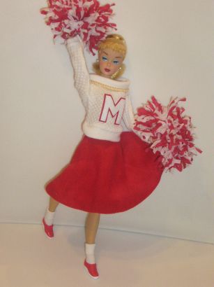 このビンテージリプロのバービーは、1964年のファッション#0876チアリーダーを再現した