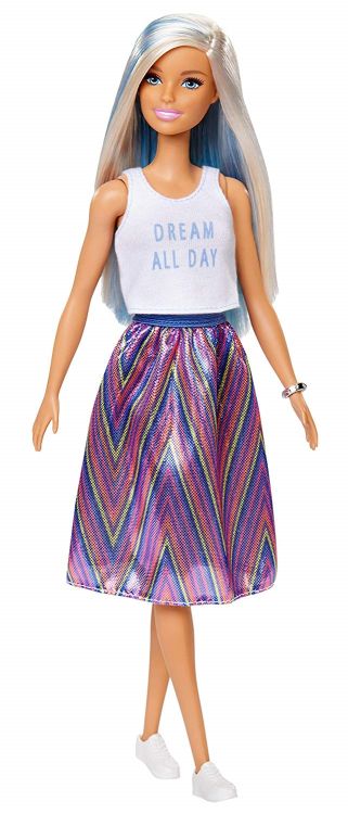 プラチナブロンドにブルーのヘアーが見え隠れするおしゃれなバービーです