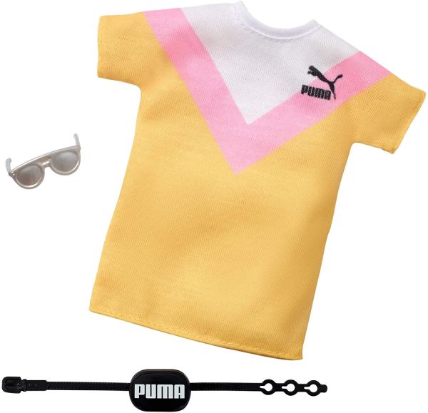 GHX81 Barbie Licensed Complete Looks3 バービーライセンスファッションアソート③ 輸入品 ¥2000+税 ¥2200 数多く仕入れておりますが 箱の状態がとても悪いのです。。。💦 プーマブランドとコラボした スポーツウエアです 黄色のBIGTシャツ サングラス バッグがセットになっています お洋服売り場に戻る