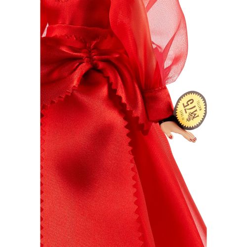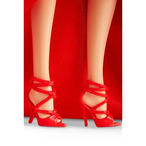 赤いシフォンのガウンに身を包まれているバービーは