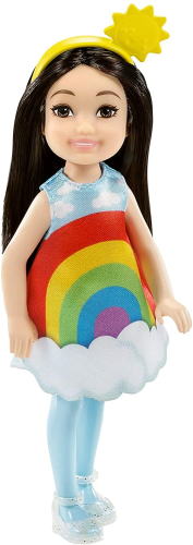 かわいいプリントと「雲」のフリルがついた虹色のコスチュームで