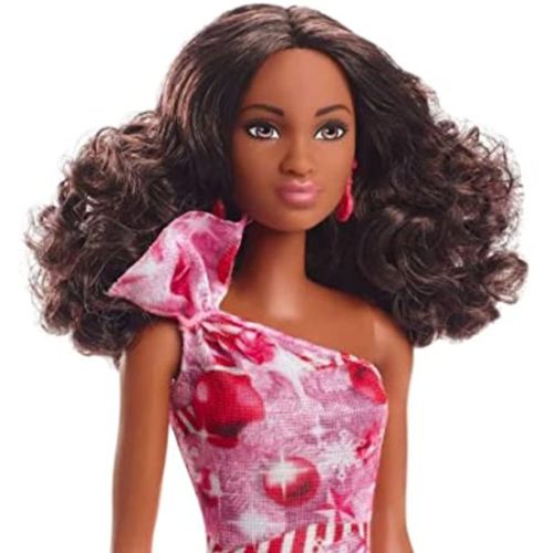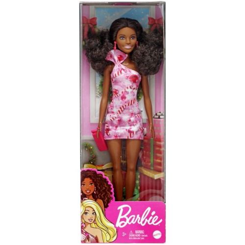 Barbie Holiday Doll Brunette Hair Candy Cane Dress