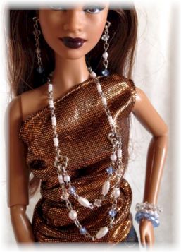 パールネックレスとラインストーンのペンダントと イアリング・ブレスレットのセット \1650 ライトクリームパールとチェーンシルバー |