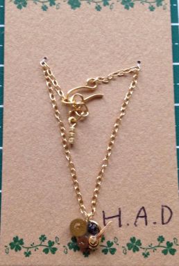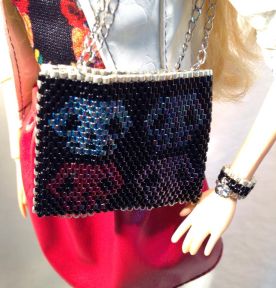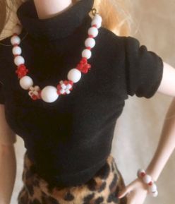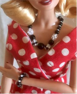 チェコビーズとシードビーズ ネックレスとブレスレットのセット ブラック&ホワイト チェーンはシルバー ¥1100 |