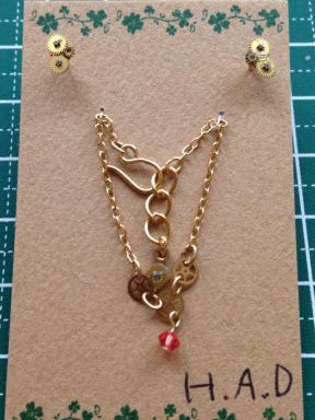 パールペンダントとラインストーンペンダント イアリングとのセット ゴールド \1650 |