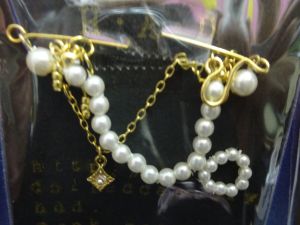 パールネックレスとラインストーンのペンダントと イアリング・ブレスレットのセット \1650 ホワイトパールとチェーンゴールド |