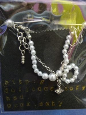 パールネックレスとラインストーンのペンダントと イアリング・ブレスレットのセット \1650 ホワイトパールとチェーンシルバー |