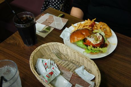 めちゃくちゃ 洋物 ハンバーガー オニオンリングがうれしい限りです