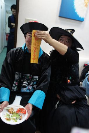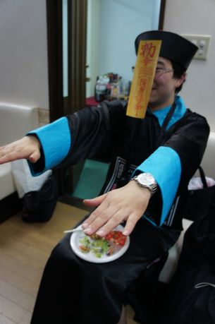 キョンシーにお札を貼って 動けないようにしちゃいました わぁ〜い