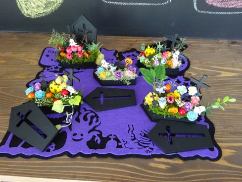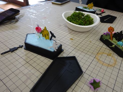 出来ました! 参加者4名と見本の作品をならべてみました。