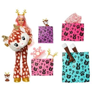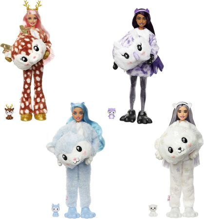 ぬいぐるみのような柔らかな動物のきぐるみからバービーが現れます。