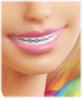 2022年パッケージ ブロンドの髪 歯列矯正 レインボードレス この子は歯列矯正をしています。 ものすごく笑顔がチャーミングなバービーです。 2022年Barbieに戻る TOPページへ戻る