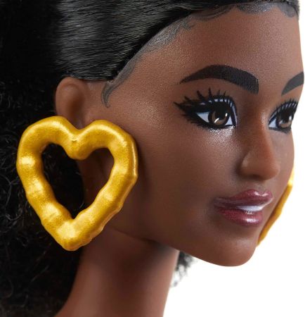 このバービー人形は、プチボディーと細かなカールが特徴です