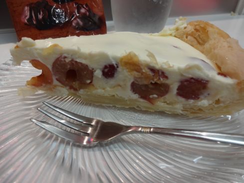 今日のスィーツは チェリーが入ったチーズケーキです。 |