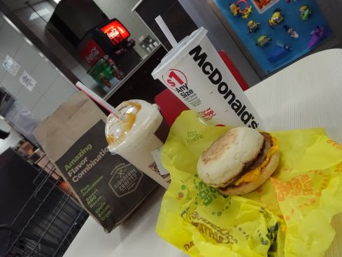 まずはマックの朝食から! ソーセージエッグマフィン