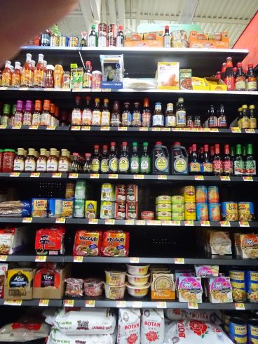 日本でいう アジア調味料コーナーには日本の醤油等も色々おいてあります。