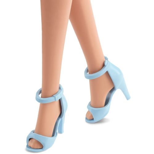 ハット、パールドロップイヤリング、ブルースリングバックのアクセサリーが