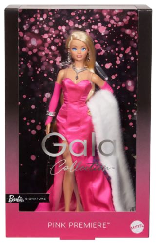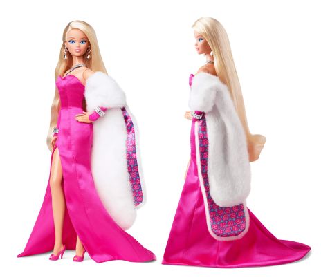 私たちの人形のバービーコアピンクのマーメイドドレス、フェイクファーのラップ、ピンヒールは