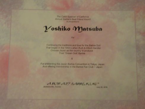この賞は日本のバービーファン全員にいただいたものだと思っております