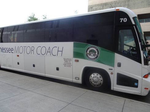 野球チームのバスのようです 泊まっているのでしょうか?