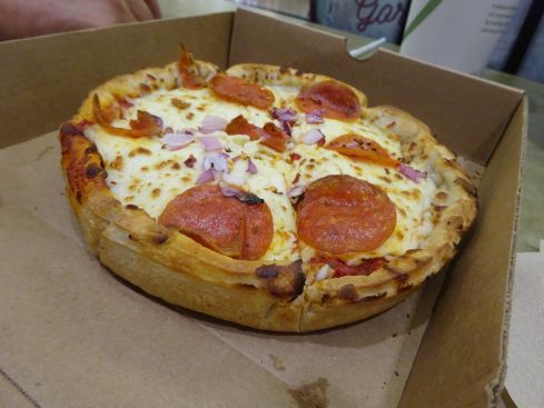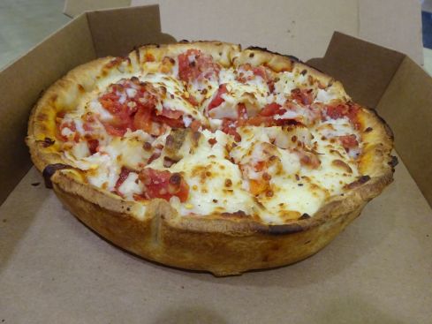 これがあのシカゴピザです 厚いでしょ? でも 小ぶりなので頑張れば食べれるかなぁ?という 微妙な大きさです。
