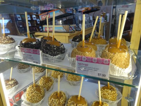 そして日本で言うリンゴ飴? 昔の旅行記でも書いたことがあるかもしれません その当時は赤や緑や青が使われて 食べると舌が真っ赤になったような代物でしたが これは どう見てもキャラメル味っぽい 税金入れると1000円になりそうな お菓子です。