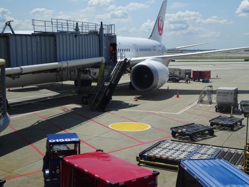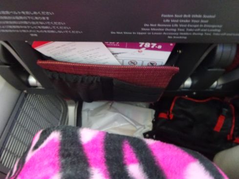 久々の日航機 椅子が若干広いかもです 毛布やヘッドレストなど心配りもさすがです。