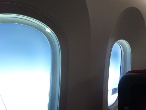 あと一つ 窓にスライドが付いているのに どこを探しても無い! 良く見たら窓の下に丸いボタンがあってそれをおしてブルーの色を調節できるようになっています これもすごいと思いました まぶしければ窓の色を濃くすればいいのです。 電子カーテンと言うそうです。