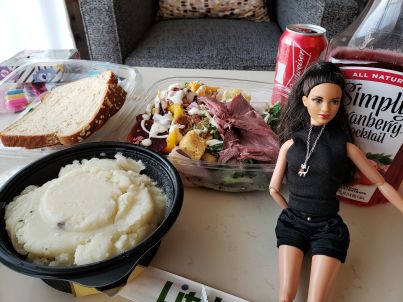 今日買ったローストビーフ 手前のはマッシュポテト それにパンを一人1枚