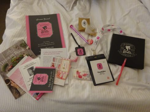 さくら先生は受付の前にサイレントオークションに出品するバービーを