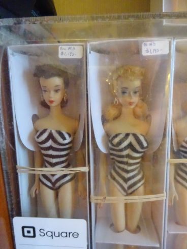 これも珍しいドールが並んでいます ピンクのロングドレスの子は素晴らしい状態でした