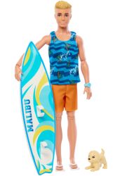 Blonde Ken Doll with Blue Button Down and Swim Trunks,