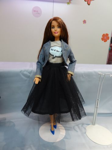 「裏無しのジャケットとTシャツ、チュールスカート」