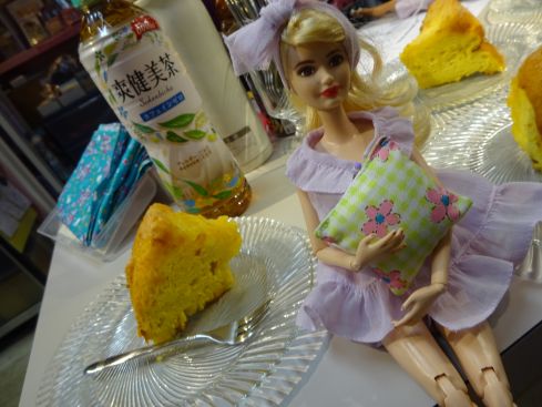 | 本日のスィーツは オレンジシフォンケーキ 生のオレンジを練り込んだので ねっとりしっとりしていました。 |