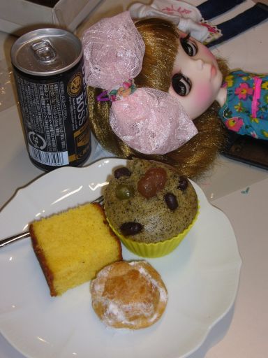 今日のスィーツは ほうじ茶と甘納豆で作った