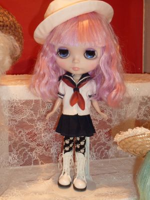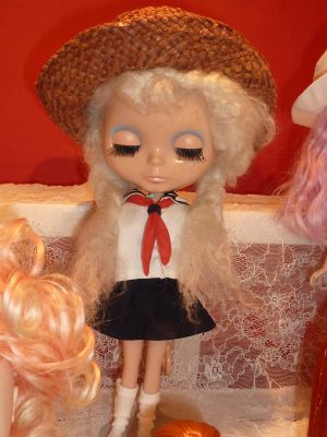 | これは私の作品です お帽子は匙ちゃんからの借り物 ブライスのヘアーは zoeさんが作ってくださいました あこがれのモヘアです。\(^o^)/ |