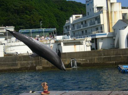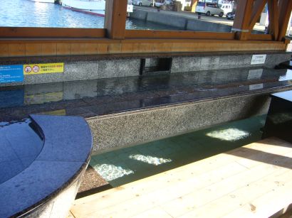 真珠やマグロの養殖場を見ながら イルカの調教場へ向かいます