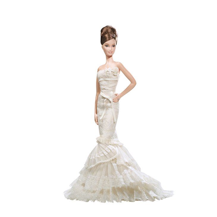 バービーが身につけたレースのドレスはマーメイドライン、裾にはフリルをたっぷりとあしらって.