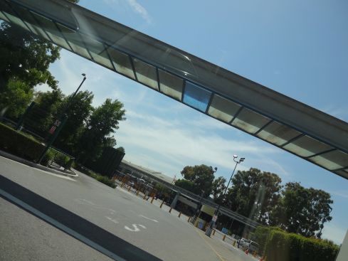モノレールの線路です 向こうに見えるのが 裏の入り口になります。