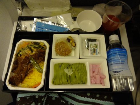 毎回同じ内容の機内食ですが バービーの分も持ち込んでいます