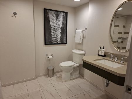 バスルームです トイレの上のフォトは