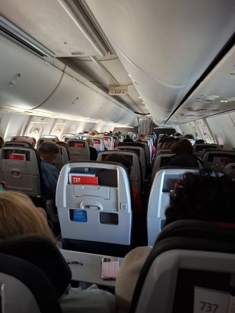 機上の人となります 今回も一番後ろの席を取ってあります 二人だけです