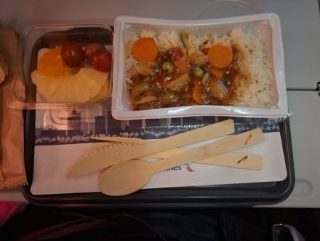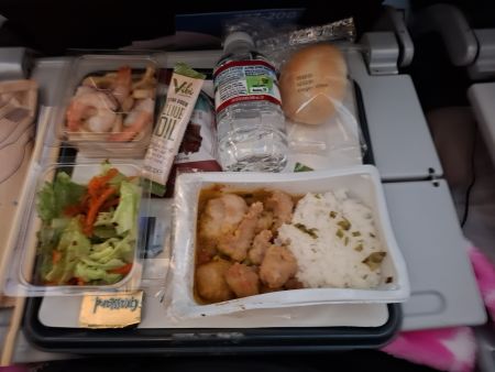最初のお食事です やっぱりアメリカン航空です 食べ物が選べません
