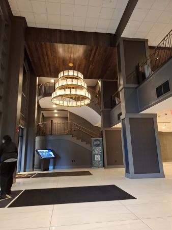 後ろのらせん階段と シャンデリアを背景に撮ったらおしゃれかなぁ