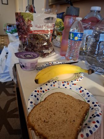 黒パン バナナ チェリー ヨーグルトなどを食べて