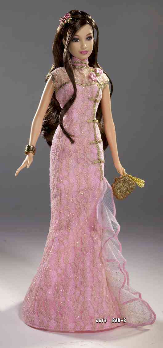 チャイナドレスは豪華でモダンなライン。このドールは限定版です