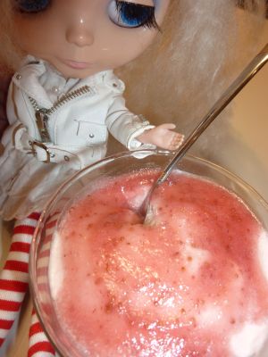 スィーツはイチゴのムースです。 ゼラチンを使わないので 少し固まりがゆるかったです (-_-;) お酒に弱い私は ちょっとほんのり 顔があかくなったりして、、、、 あっ!