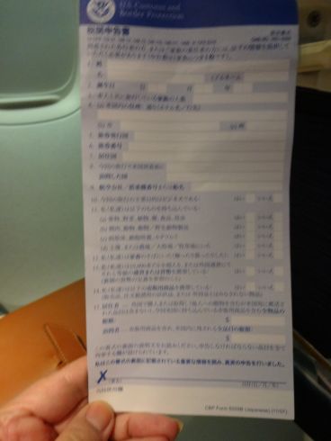 朝食が食べ終わる頃税関申告書を書いておきましょう